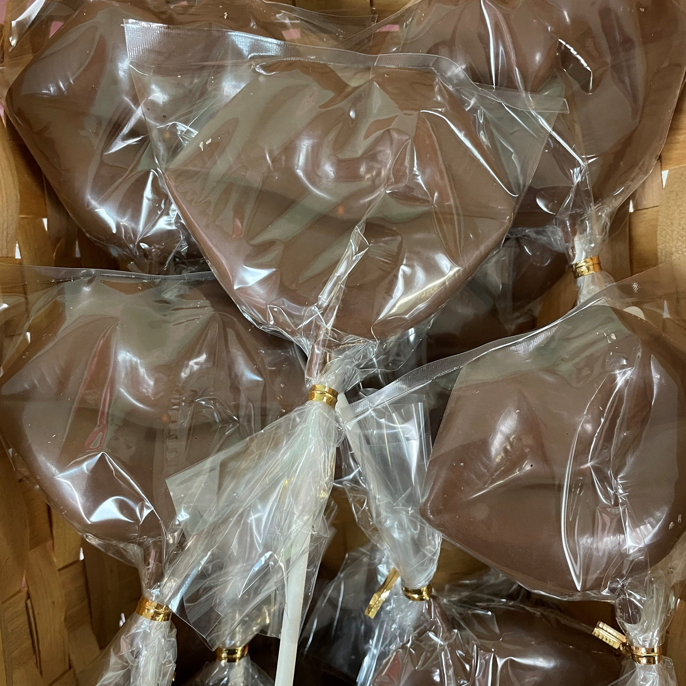 A fun, festive Valentine's Day lip pop in milk, dark, or white Belgian chocolate