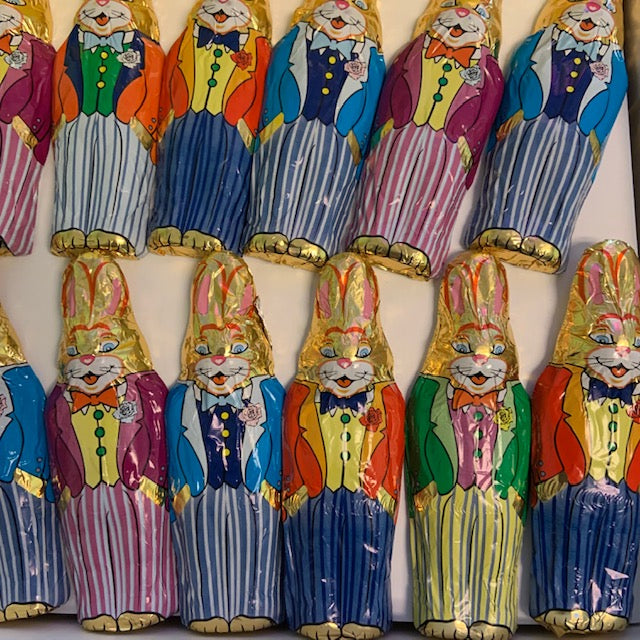 3/4 oz milk chocolate rabbit in detailed italian foil. Great for baskets and favors.